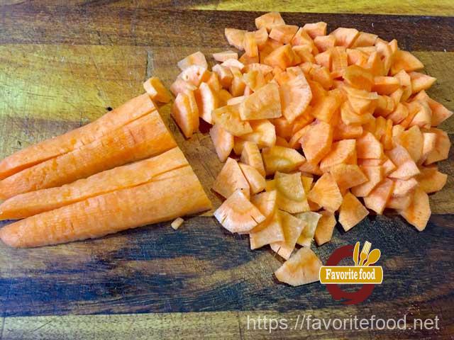 •   Тем временем моем и чистим морковь. Нарезаем на пластинки.
