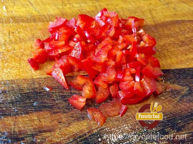 • Далее нарезаем ½ средне-острого перца соломкой. Если Вам хочется поострее, добавьте с суп стручок острого перца.