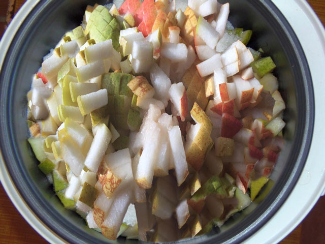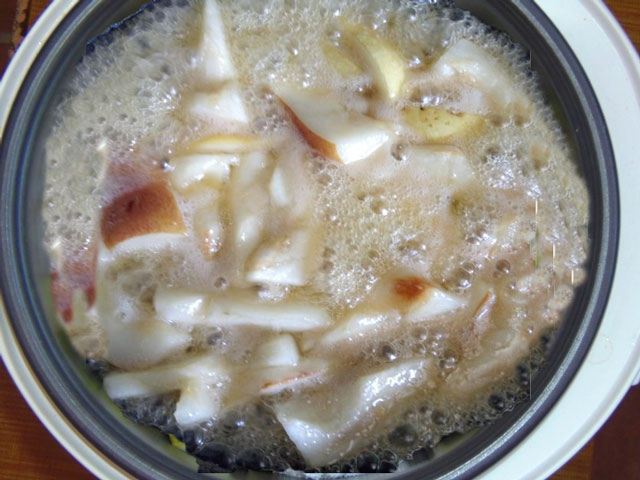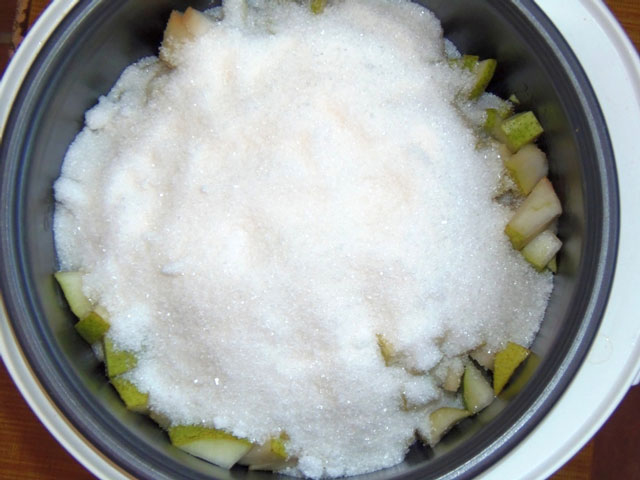 • Засыпаем груши сахаром и оставляем на пару часов, чтоб груши дали сок, затем варим их, на медленном огне, около 20 минут, с момента закипания, постоянно помешивая.