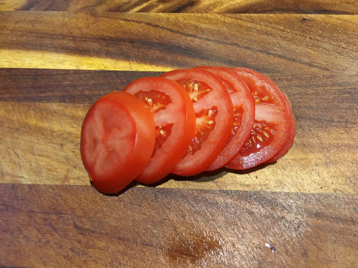 - Помидоры режем кольцами