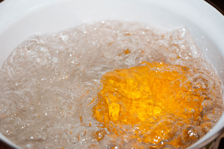 - Кладем разрезанный апельсин в кипящую воду и варим его 1,5 минуты.