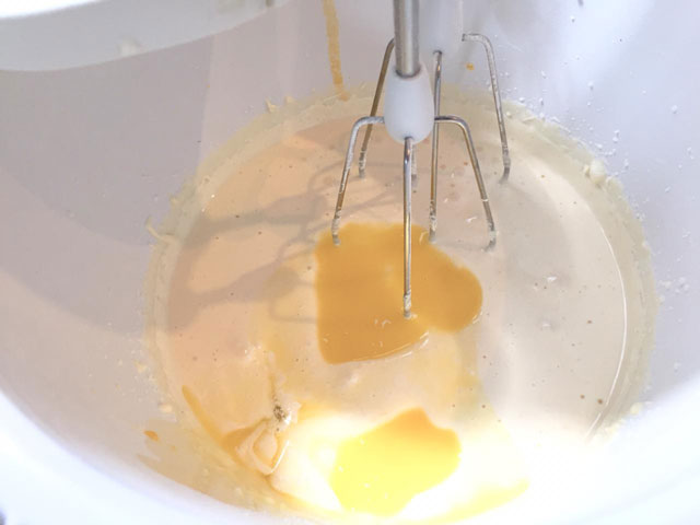 - Выливаем в тесто растопленное сливочное масло, перемешиваем.