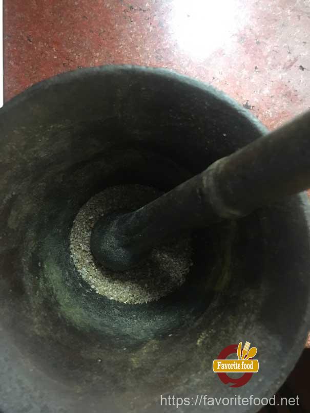 - Чеснок мелко рубим, а специи лучше перемолоть все в ступке. Свежемолотые специи намного ароматнее молотых.