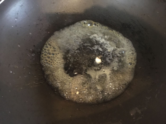 - Ставим на огонь большую сковороду, кладем в нее жир от мяса.