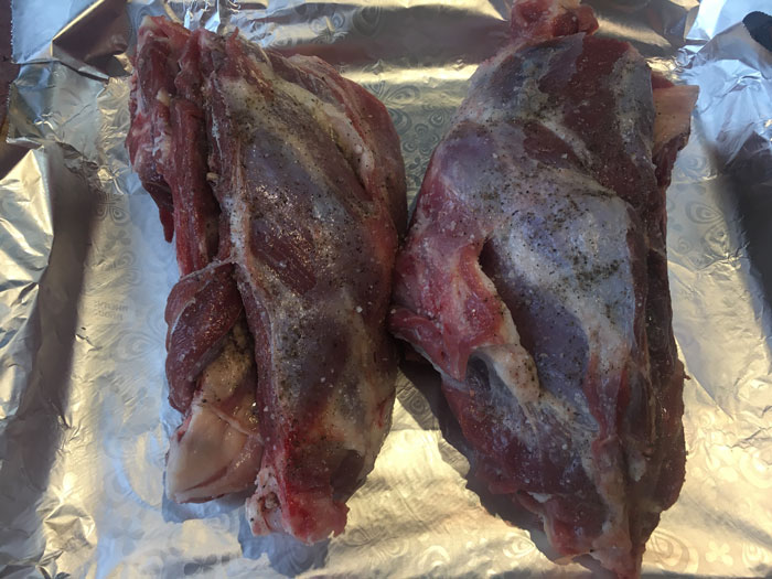 - Смазываем лопатки оливковым масло ( или растительным маслом), натираем перцем и солью. А затем заворачиваем в пекарскую бумагу.