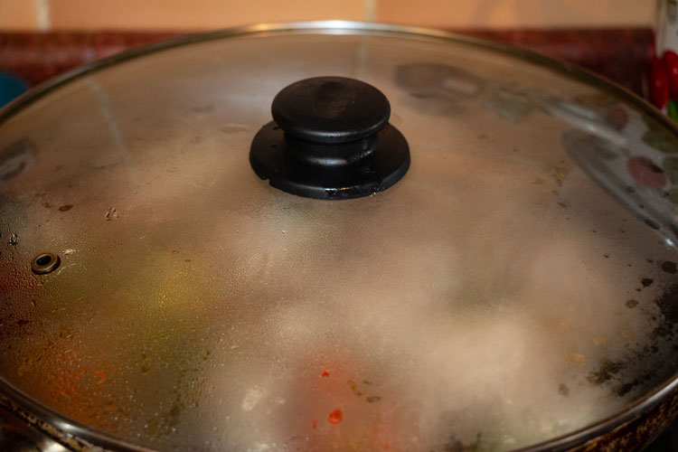 Добавить огонь, дать закипеть. Убавим огонь до положения ниже среднего, закроем крышкой