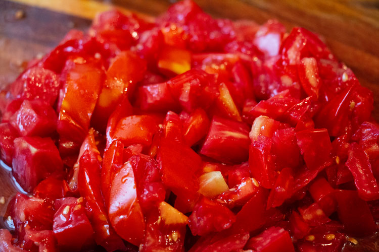 • Помидоры можно порезать кубиками, а можно просто на четвертинки. Как вам больше нравиться.