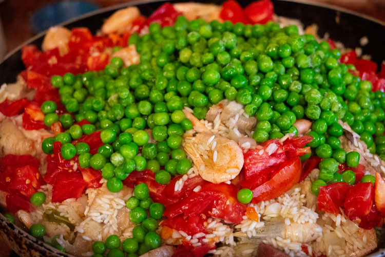 • Теперь можно добавить помидоры,горох, шафран, кайенский перец.