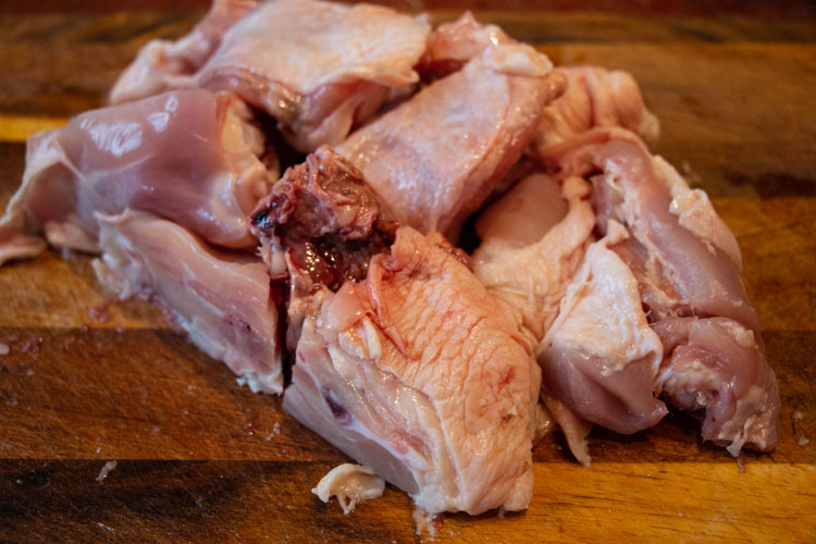 • Курицу режем на 12 частей. Если используете бедра например, то тоже порежьте каждое бедро на 3-4 кусочка.