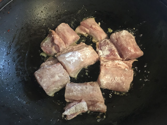 - Обмакиваем каждый кусочек в крахмал, Складываем обратно в миску и убираем в холодильник