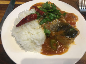 - Через 30 минут, снимаем крышку, добавляем огонь и даем соусу загустеть. Рыба готова, подаем с отваренным рисом, посыпав мелко нарезанной кинзой. Приятного аппетита.