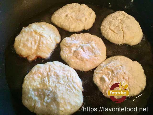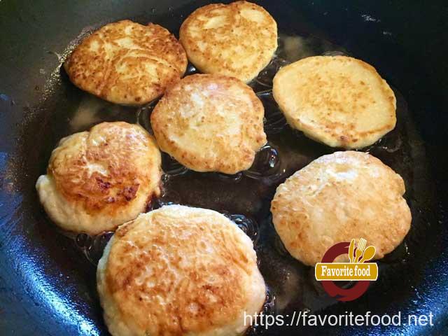 • Отправляем на разогретую сковороду. Так заполняем всю сковороду сырниками.