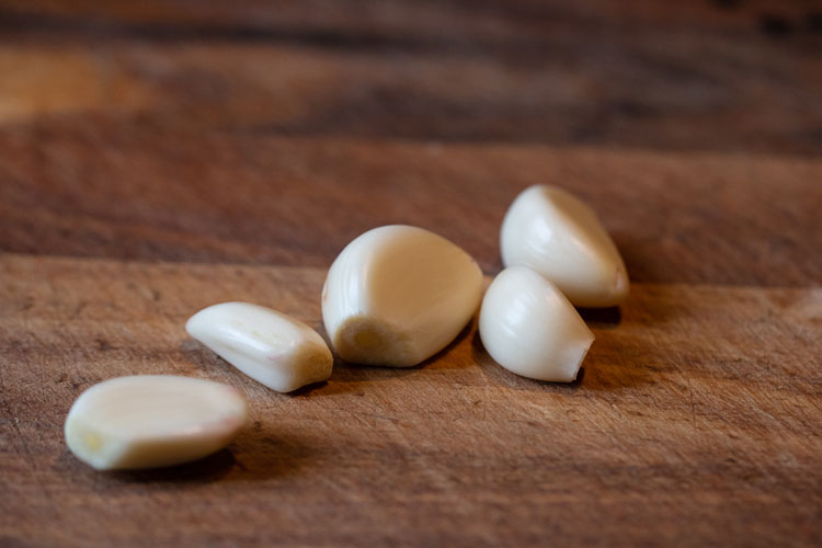 - А пока почистим и мелко нарубим чеснок. Порубим мелко зелень.