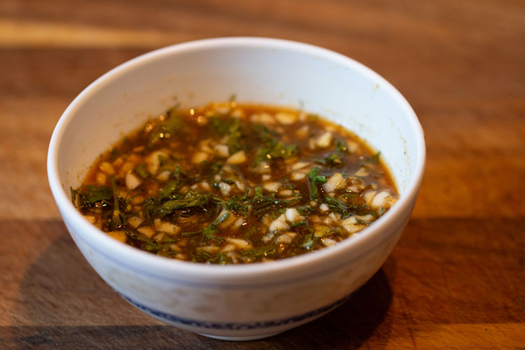 - И мелко нарубленную зелень кинзы. Перемешиваем и соус готов.