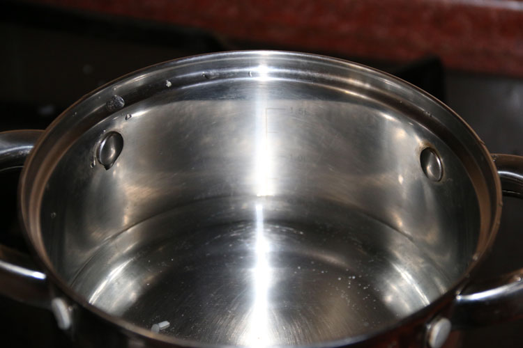 Ставим на огонь кастрюлю. Воду подсаливаем. И ждем пока закипит. Только после этого опускаем рис.
