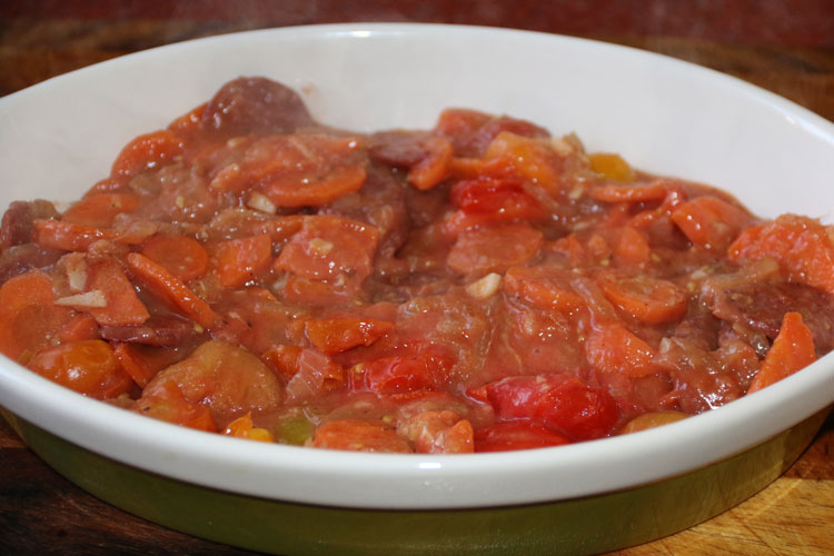 - Берем подходящую форму для запекания. Перекладываем все со сковороды в нее.