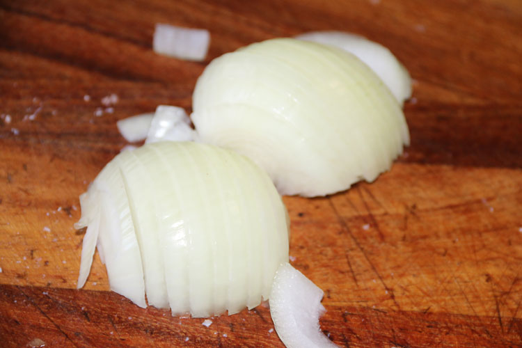 - Лук режем полукольцами.