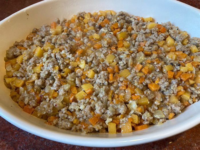 Запеканка с мясом и брюквой.