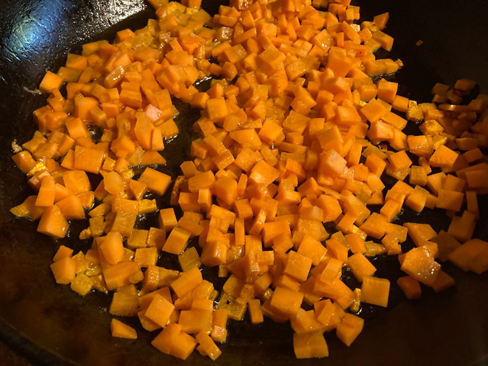 - Отправляем морковь на разогретую сковороду.