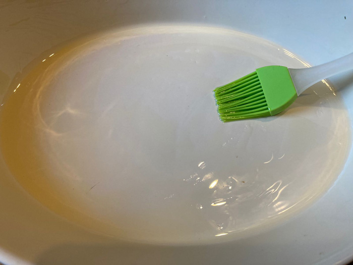 - Все составляющие запеканки готовы, можно приступить к ее сборке. Разогреваем духовку до 200 градусов. А пока она разогревается, смазываем растительным маслом форму для запекания.