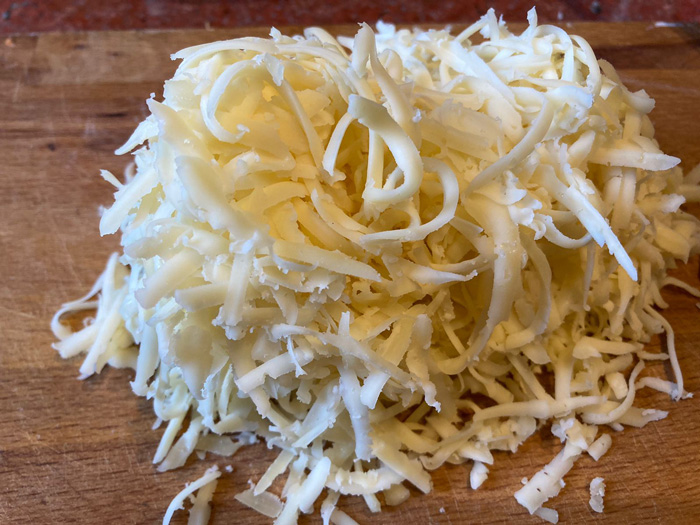 - Натираем сыр на крупной терке.