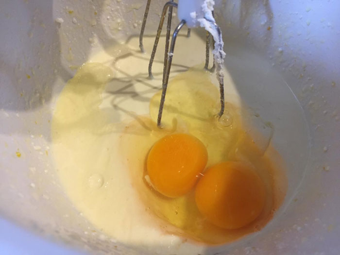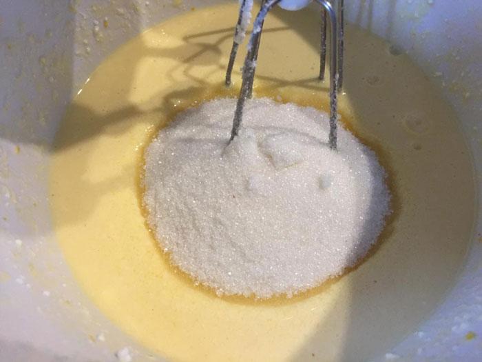 • В получившуюся смесь всыпать сахар и очень хорошо перемать, чтоб сахар растворился.