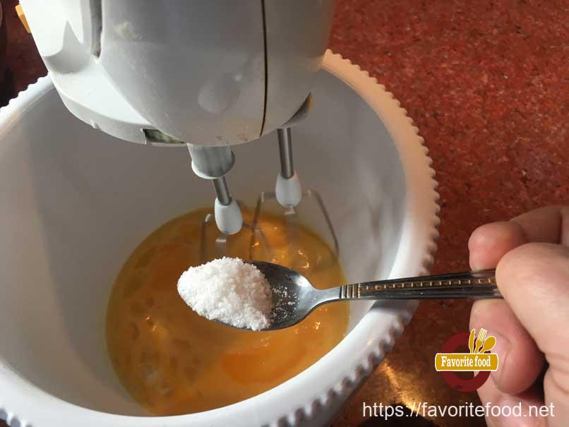 Затем разбиваем два яйца в чашку миксера или просто чашку если будем смешивать в ручную.