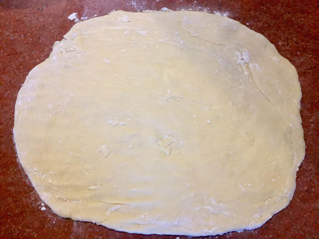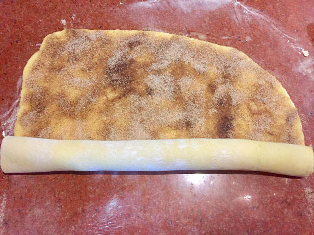 - Скручиваем тесто не плотным рулетом.