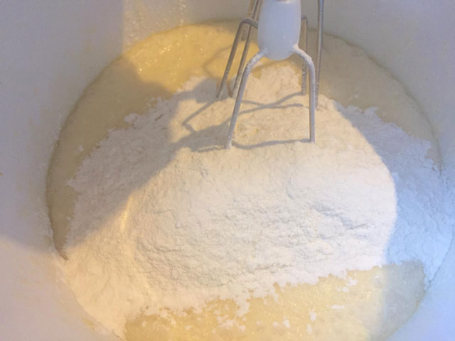 - В получившуюся смесь вливаем набухшие дрожжи, перемешиваем.