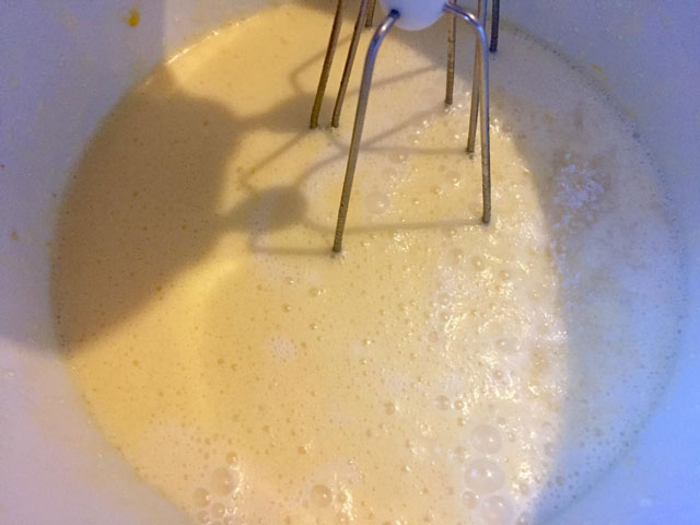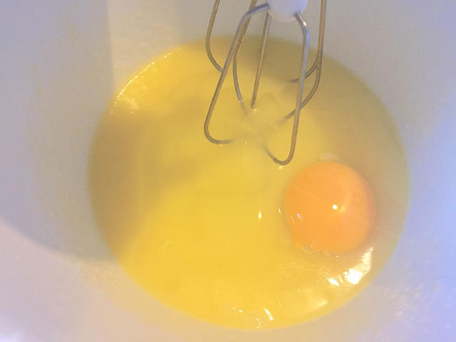 - К растертому маслу добавляем куриные яйца, по одному, взбиваем смесь блендером.