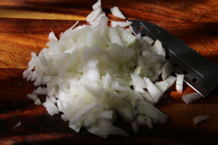 - Чистим овощи. Лук нарезаем мелкими кубиками.