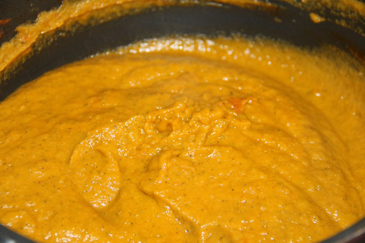 - Используя погружной блендер, превратим нашу икру в пюре.
