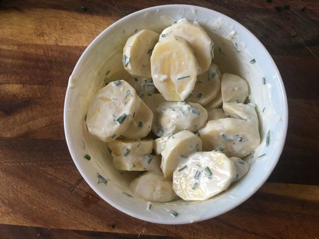 • Все хорошо перемешаем и зальем эти соусом картошку, хорошо перемешав ее. Дадим ей постоять часок. Что малость просолиться.