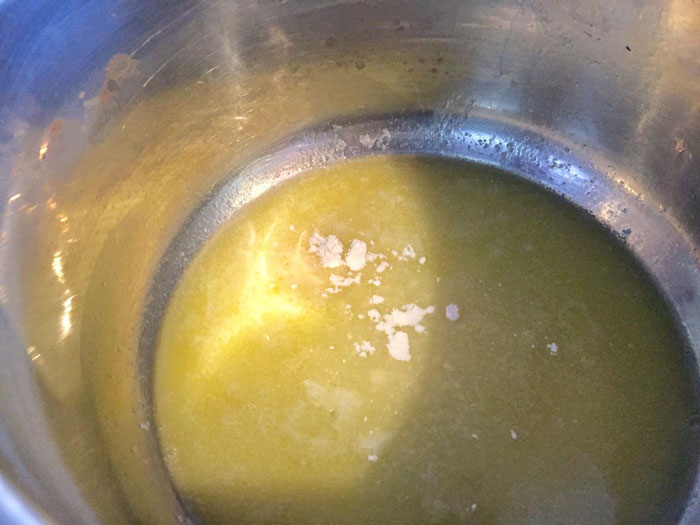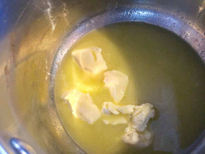 - В кастрюльке растапливаем сливочное масло на слабом огне.