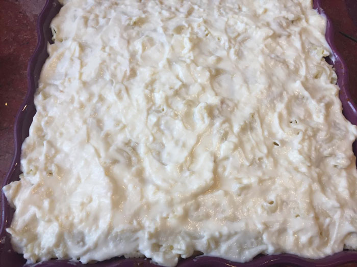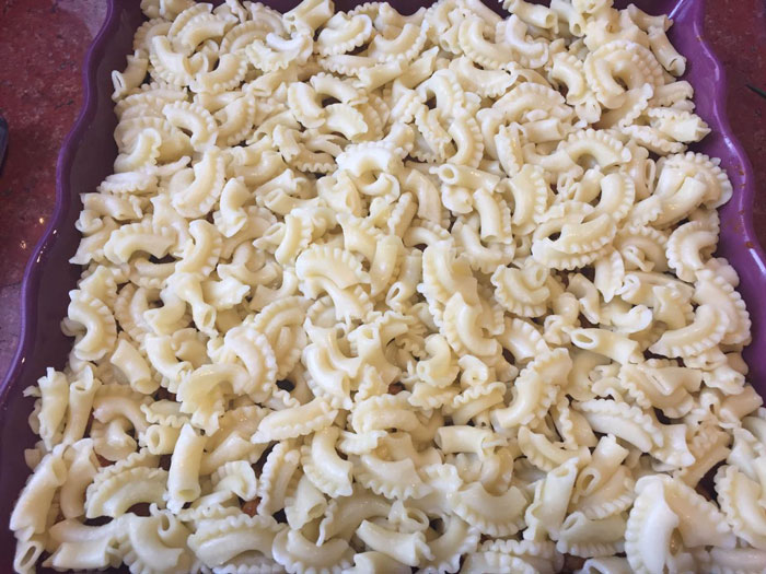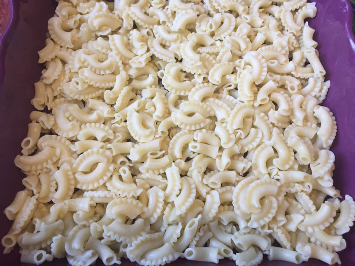 - Третий слой – остатки вареных макарон.