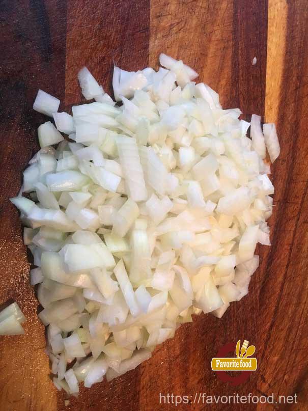 - Лук нарезаем кубиками.
