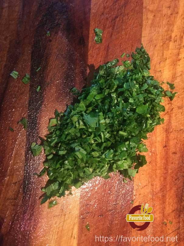 - Так же мелко шинкуем петрушку.