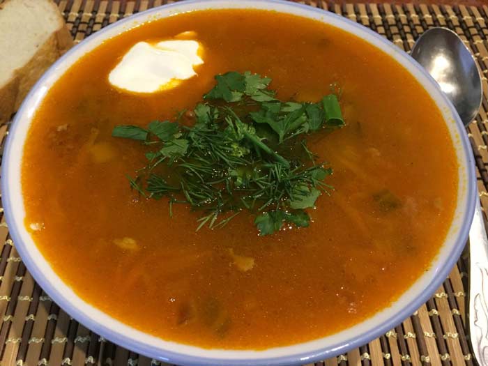 Его готовили с солеными огурцами на кислой основе, добавляя картофель, морковь, лук , репу. Так же зачастую добавляли и много зелени, вход шел: укроп, петрушка, щавель, сельдерей.  В качестве крупы могли использовать перловку или овсянку.