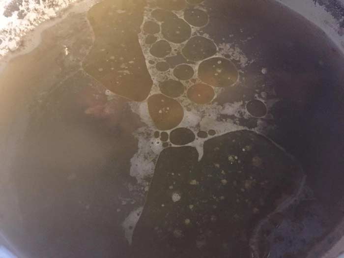 • Для рассольника подойдет любое мясо, главное, чтоб оно было с косточкой, тогда бульон будет наваристым и вкусным. Итак, моем мясо на косточке и отправляем его в кастрюлю с водой, добавляем лавровый лист. Ставим кастрюлю на огонь и варим мясо на косточке около полутора часов. Не забудьте снять пену после закипания воды шумовкой или ложкой, чтоб бульон не был мутным. Не солите воду! Соль добавим, когда суп будет практически готов.