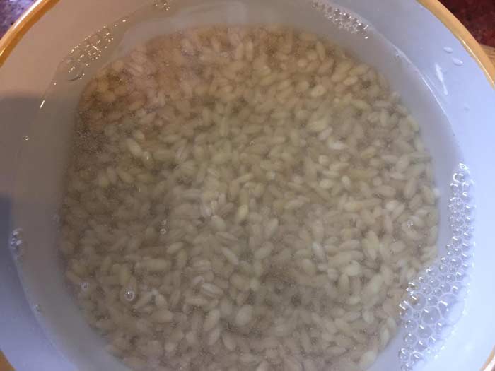 • Пока варится бульон, промоем перловую крупу под проточной водой и замочим ее в воде на 1 час, чтоб крупа набухла. Можно перловую крупу замочить на ночь, тогда время ее варки сократится.