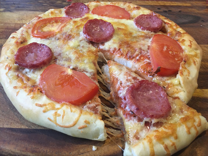 Сегодня приготовим пиццу с пышной основой и таким фаршированным сыром краешком. Попробуем приготовить? Тогда вперед !!