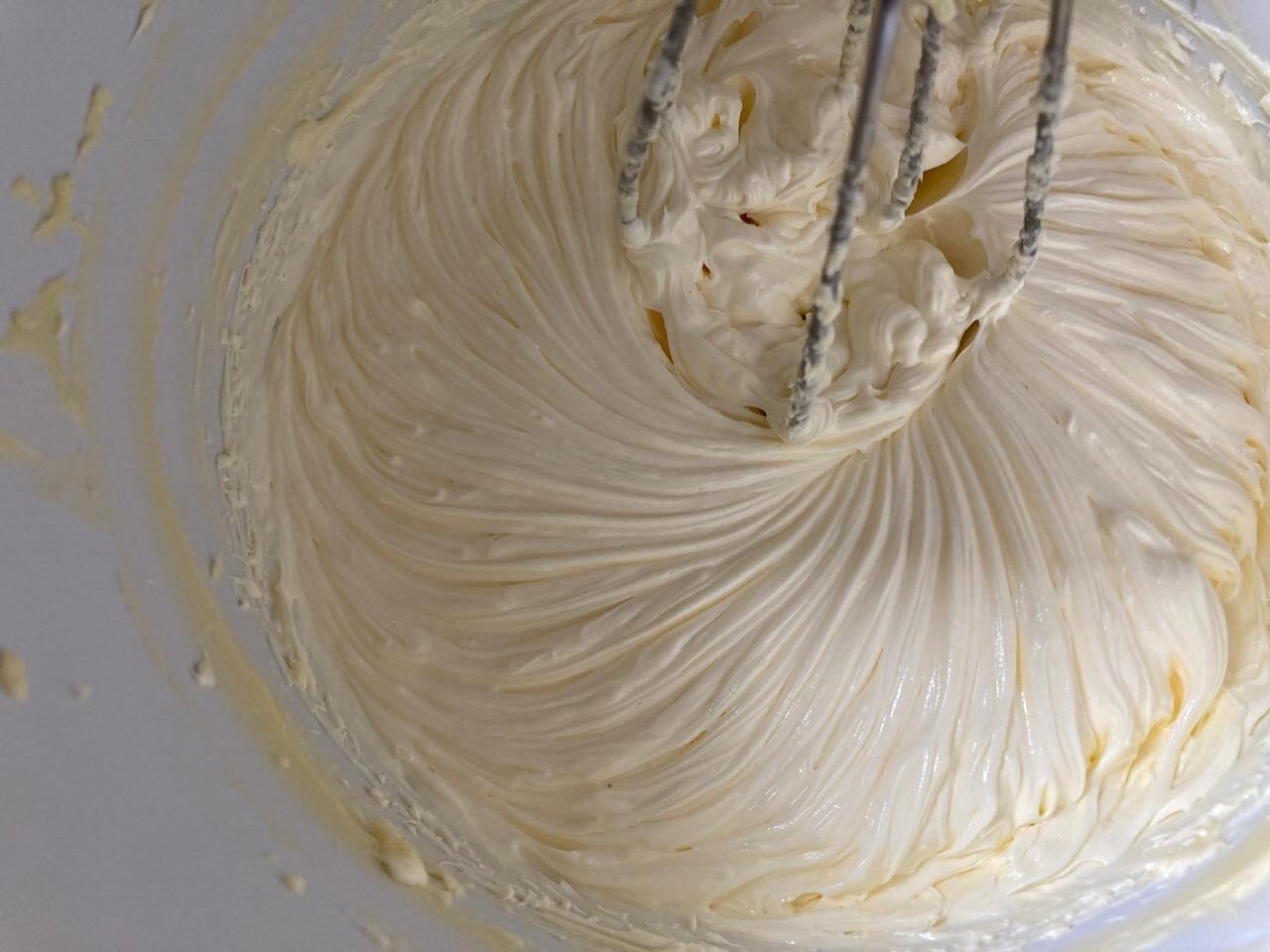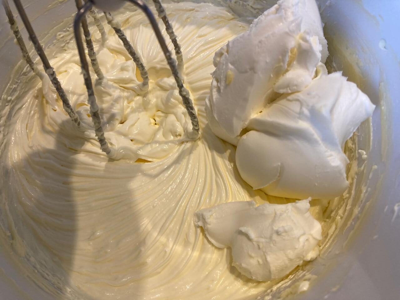 - Далее, добавляем сливочный сыр и продолжаем взбивать.