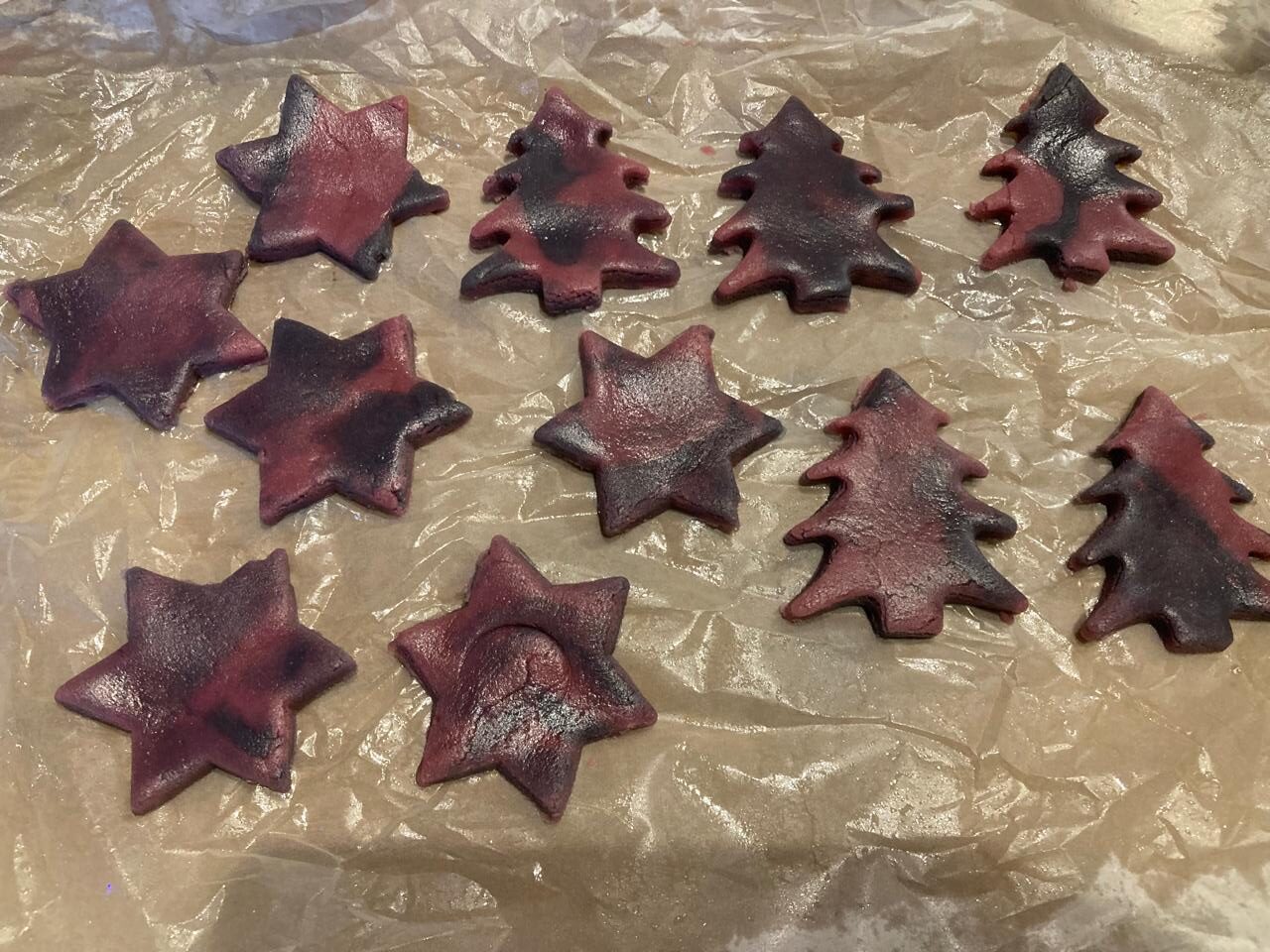 - Дальше Вы придаете задуманную форму будущего печенья либо выдавливая печеньки формами для печенья, либо вырезая ножом. Тут полный полет Вашей фантазии.