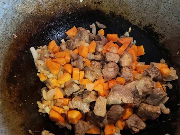 Ключево слово как приготовить вкусный обед, Как приготовить мясо с картофелем, мясо с картошкой, Мясо тушеное в казане, Пошаговый рецепт мяса с картошкой, Рецепт мяса с картошкой, Тушеное мясо с картошкой