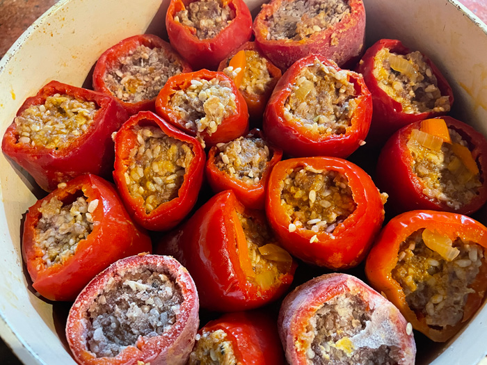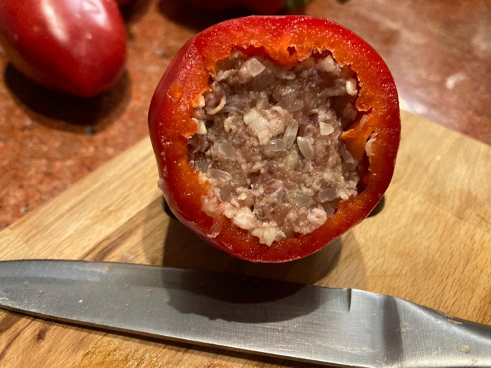- Начиняем подготовленной начинкой подготовленные перчики, стараемся, чтоб не оставалось пустот внутри. Полуфабрикат фаршированного перца готов. Дальше можно сразу приступить к приготовлению перцев или сложить получившиеся полуфабрикаты в полиэтиленовый мешок или контейнер и убрать в морозильную камеру – заготовка на зиму. Так фаршированные перчики будут радовать летней яркостью и отличным вкусом в любое время года.