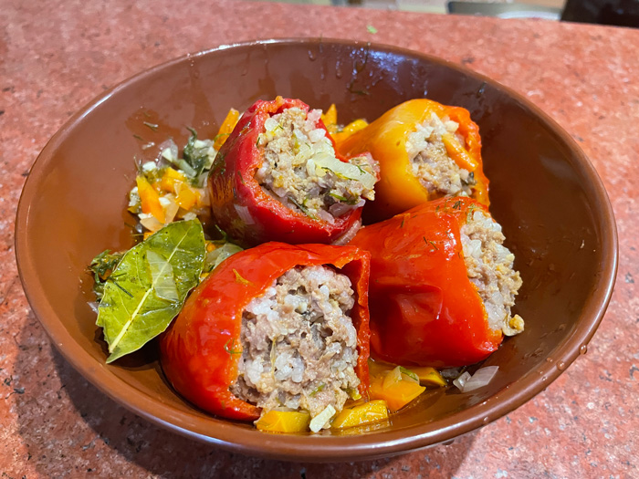 Фаршированный перец – сытное и вкусное блюдо болгарской, молдавской, румынской, украинской, грузинской, русской, а также азербайджанской кухни. Блюда из сладкого перца, фаршированного мясом и рисом, можно добавить в начинку помидоры и сыр.