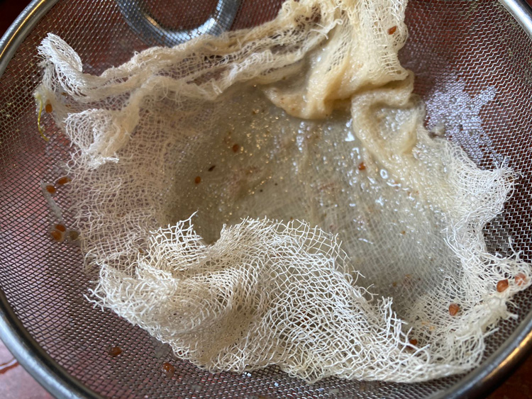 Жмых отжимаем через марлю и получившийся сок тоже можно процедить через марлю, чтоб желе было прозрачным.