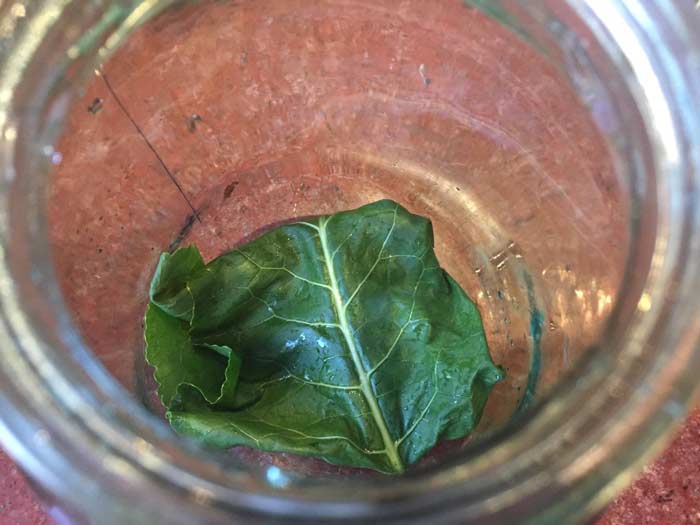 На дно банки кладем вымытый сложенный лист хрена.